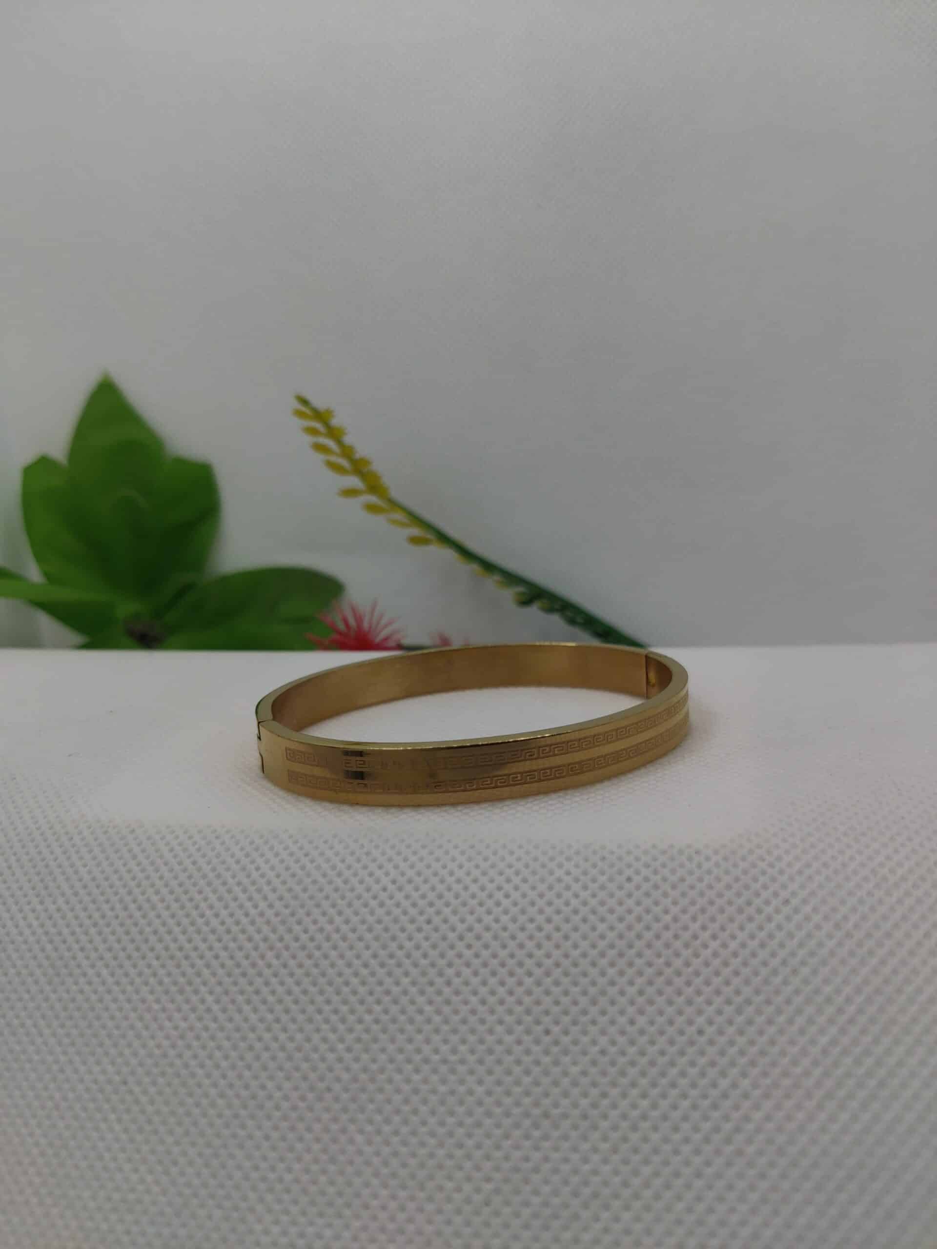Classic Gold-Plated Cuff Bracelet with Greek Key Design