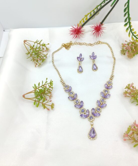Elevate your elegance with this exquisite crystal necklace set. Designed with a sleek, cascading drop pendant and shimmering stones, this set adds a touch of sophistication to any outfit. The matching earrings enhance its refined charm, making it ideal for weddings, evening events, and celebrations.